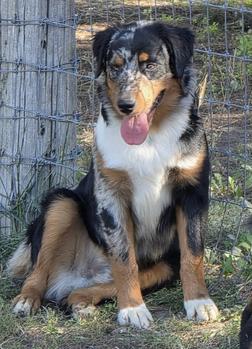 Blue is a flashy standard size blue merle male of Hadley and Boomer. Boomer comes from level headed working stock and Hadley is a couch potato with a deep love for her people. Blue will require some work but is friendly with people he knows and at the awkward age where some new things have him super curious and at times unsure but not aggressive or reactive. Loves kids and toys. He is currently in his chewing stage so he enjoys hooves and bully sticks for hours. Will be nuetered before leaving and is fully vaccinated. Born in March 2025 $800